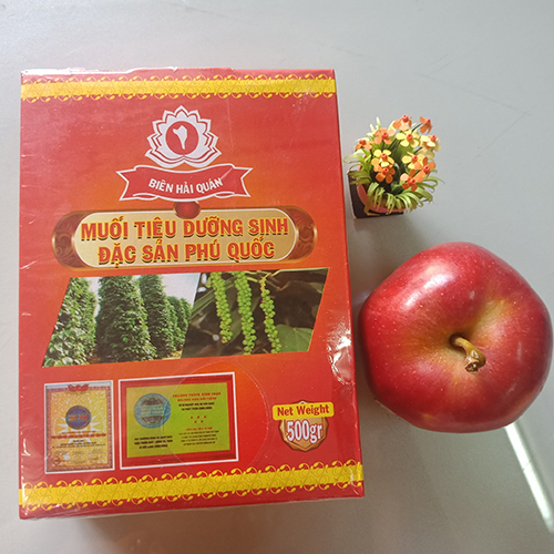 Đặc trưng : Muối tiêu Phú Quốc ,có nguyên liệu chính là tiêu chín khô ở Phú Quốc. Mùi thơm cay nồng, đảm bảo không giống bất kì muối tiêu nào khác tại Hồ Chí Minh và Hà Nội nếu không có hạt tiêu từ Phú Quốc.